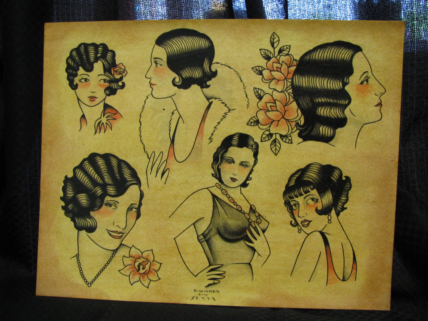 While this is actually pictures for tattoos, I wanted to utilize this to show a good example of different hairstyles that were also popular at this time, that not only work for today, but gives a really nice soft feminine look for short hairstyles. Having short hair can often times limit options for looks. This gives